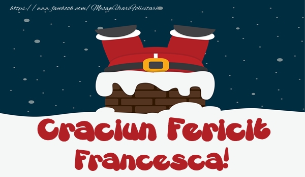 Craciun Fericit Francesca! | Felicitare cu Mos Craciun în coșul de fum | Felicitari de Craciun