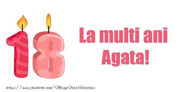 La multi ani Agata! 18 ani | Felicitare cu lumanari rosii si roz cu 18 pe fundal alb | Felicitari de zi de nastere