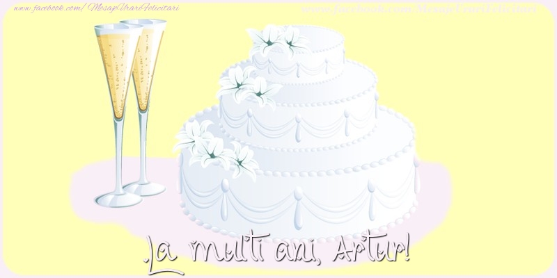 La multi ani, Artur! | Felicitare cu tort de frișcă și pahare de șampanie | Felicitari de zi de nastere