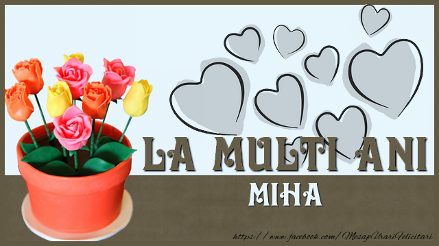 La multi ani Miha | Felicitare cu trandafiri în ghiveci și inimioare | Felicitari de zi de nastere