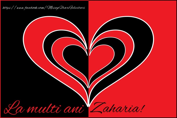 La multi ani Zaharia! | Felicitare cu inimioare roșu cu negru | Felicitari de la multi ani