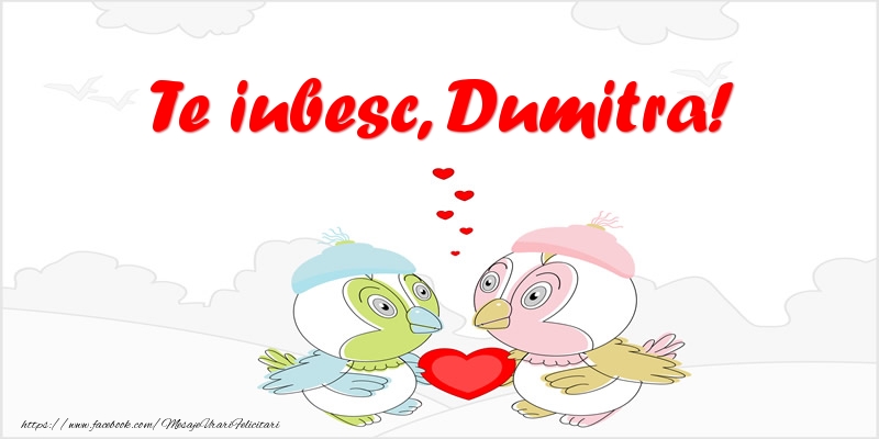 Te iubesc, Dumitra! | Felicitare cu doi puișori îndrăgostiți | Felicitari de dragoste