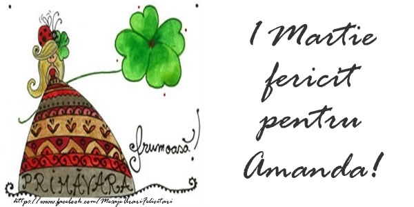 Transformă Mărțișorul într-o experiență personală! Această felicitare de 1 Martie cu mărțișor cu o primăvară frumoasă este gândită și creată cu atenție, iar numele Amanda se îmbină armonios în designul primăvăratic. O urare cu adevărat specială pentru o persoană unică.