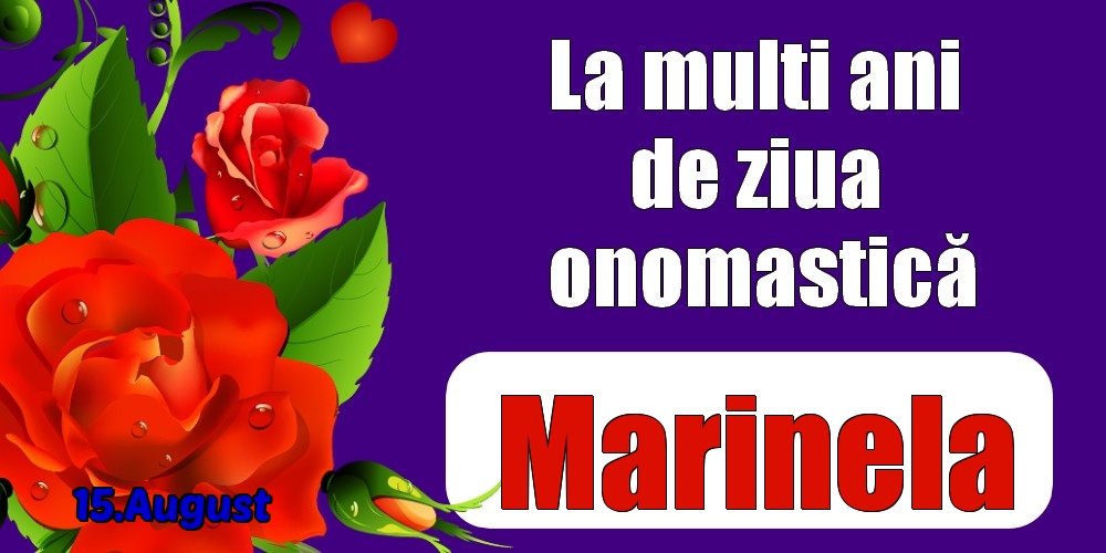 15.August - La mulți ani de ziua onomastică Marinela! | Felicitare cu trandafiri roșii pentru femei | Felicitari de Ziua Numelui