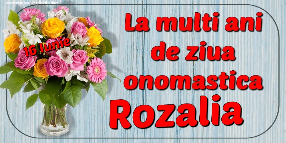 Poezie de ziua numelui: De ziua ce-ti surade-n prag / Si-i porti frumosul nume, / Eu iti doresc tot ce-i mai drag / Si mai frumos pe lume. La multi ani, Rozalia!