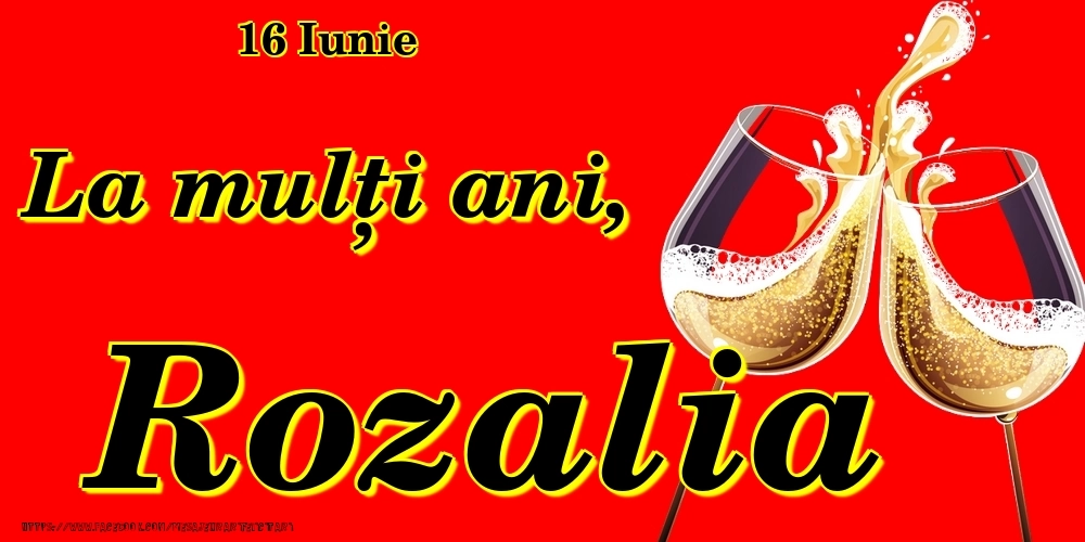 Felicitarea cu pahare de șampanie pe fundal roșu de Ziua Numelui este un cadou gândit special pentru sărbătoare numelui Rozalia. Numele Rozalia devine piesa centrală a acestui dar unic, aducând sărbătoriților un strop de bucurie în aceată zi specială.