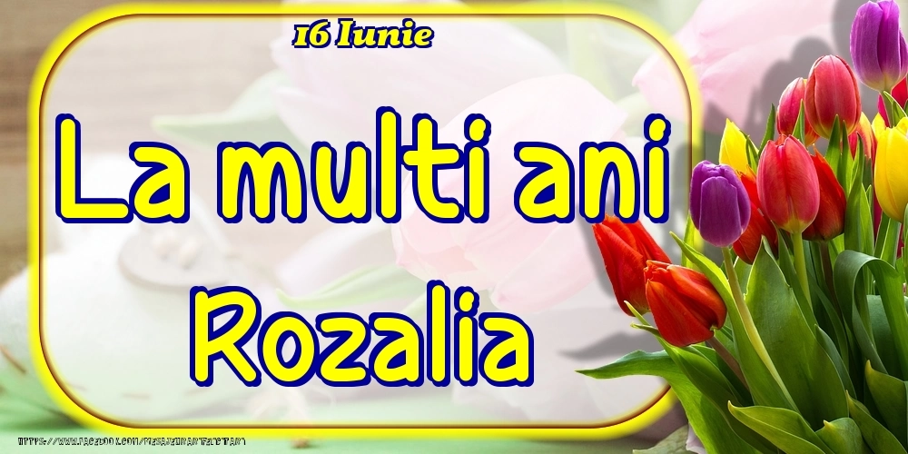 Felicitarea cu lalele colorate de Ziua Numelui este un cadou gândit special pentru sărbătoare numelui Rozalia. Numele Rozalia devine piesa centrală a acestui dar unic, aducând sărbătoriților un strop de bucurie în aceată zi specială.