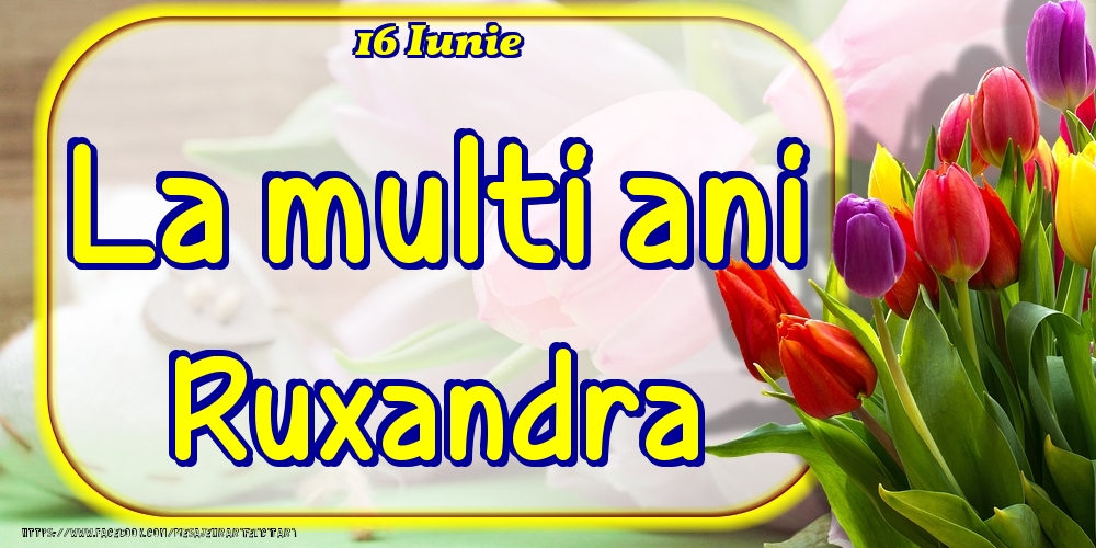 16 Iunie -La  mulți ani Ruxandra! | Felicitare cu lalele colorate | Felicitari de Ziua Numelui