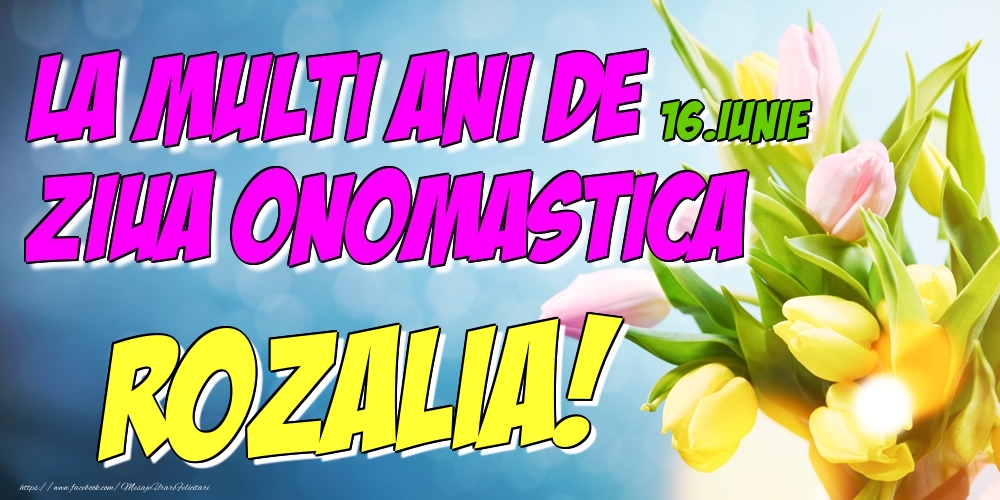 16.Iunie - La multi ani de ziua onomastica Rozalia! | Felicitare cu lalele galbene și roz pentru femei | Felicitari de Ziua Numelui