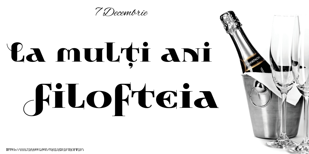 7 Decembrie -La  mulți ani Filofteia! | Felicitare cu șampanie la gheață cu pahare pe fundal alb | Felicitari de Ziua Numelui