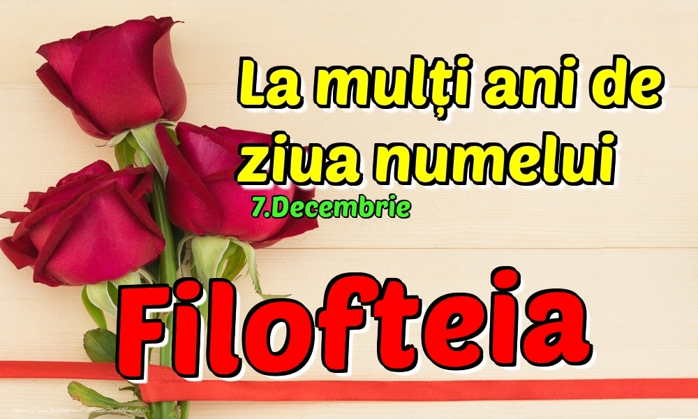 7.Decembrie - La mulți ani de ziua numelui Filofteia! | Felicitare cu 3 trandafiri roșii pentru o amică | Felicitari de Ziua Numelui