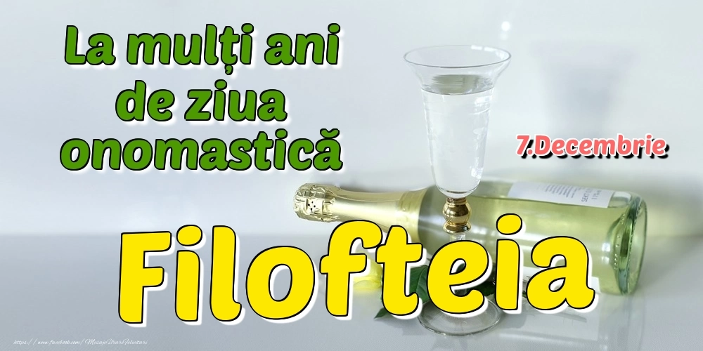 7.Decembrie - La mulți ani de ziua onomastică Filofteia | Felicitare cu șampanie și flori pentru doamne sau domni | Felicitari de Ziua Numelui