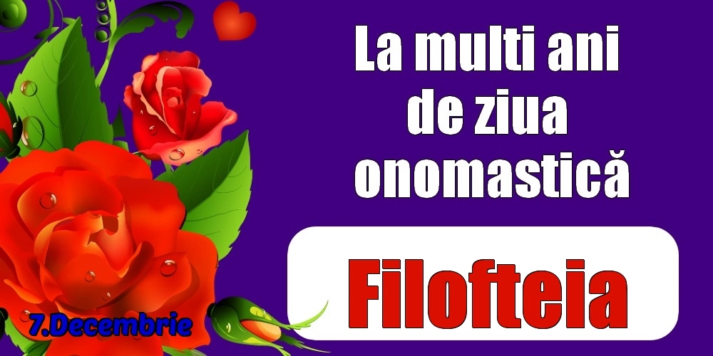 7.Decembrie - La mulți ani de ziua onomastică Filofteia! | Felicitare cu trandafiri roșii pentru femei | Felicitari de Ziua Numelui