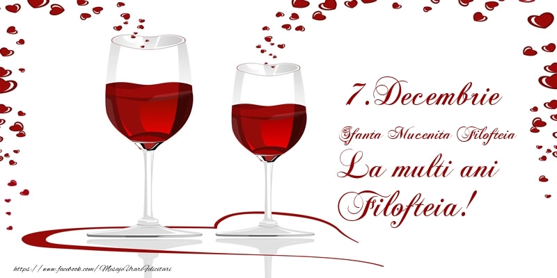 7.Decembrie La multi ani Filofteia! | Felicitare cu pahare de șampanie și inimioare cu dragoste | Felicitari de Ziua Numelui