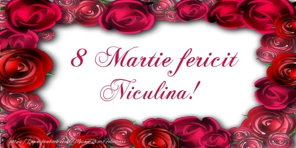 Oferiți mai mult decât un simplu cadou - oferiți o emoție personalizată de Ziua Femeii cu numele Niculina! Felicitarea de 8 Martie cu bordură din trandafiri este menită să încânte și să emoționeze, sărbătorind feminitatea în toată splendoarea sa.
