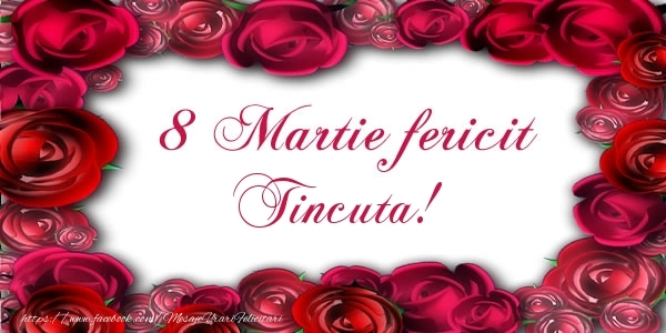 Oferiți mai mult decât un simplu cadou - oferiți o emoție personalizată de Ziua Femeii cu numele Tincuta! Felicitarea de 8 Martie cu bordură din trandafiri este menită să încânte și să emoționeze, sărbătorind feminitatea în toată splendoarea sa.