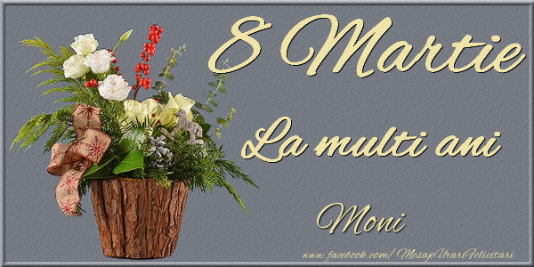 8 Martie. La multi ani Moni | Felicitare cu aranjament de flori in cos | Felicitari 8 Martie Ziua Femeii