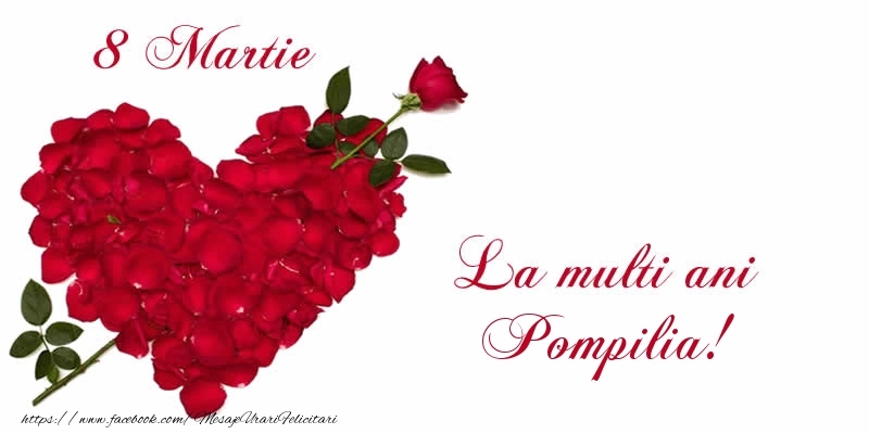 Oferiți mai mult decât un simplu cadou - oferiți o emoție personalizată de Ziua Femeii cu numele Pompilia! Felicitarea de 8 Martie cu inimă din trandafiri este menită să încânte și să emoționeze, sărbătorind feminitatea în toată splendoarea sa.