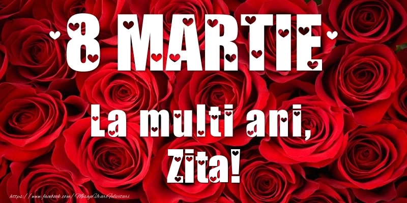 Oferiți mai mult decât un simplu cadou - oferiți o emoție personalizată de Ziua Femeii cu numele Zita! Felicitarea de 8 Martie cu fundal cu trandafiri este menită să încânte și să emoționeze, sărbătorind feminitatea în toată splendoarea sa.