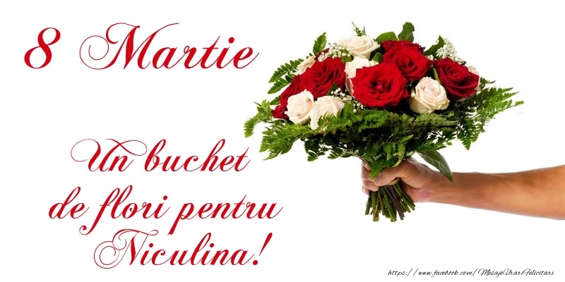 Oferiți mai mult decât un simplu cadou - oferiți o emoție personalizată de Ziua Femeii cu numele Niculina! Felicitarea de 8 Martie cu buchet de trandafiri in mana este menită să încânte și să emoționeze, sărbătorind feminitatea în toată splendoarea sa.