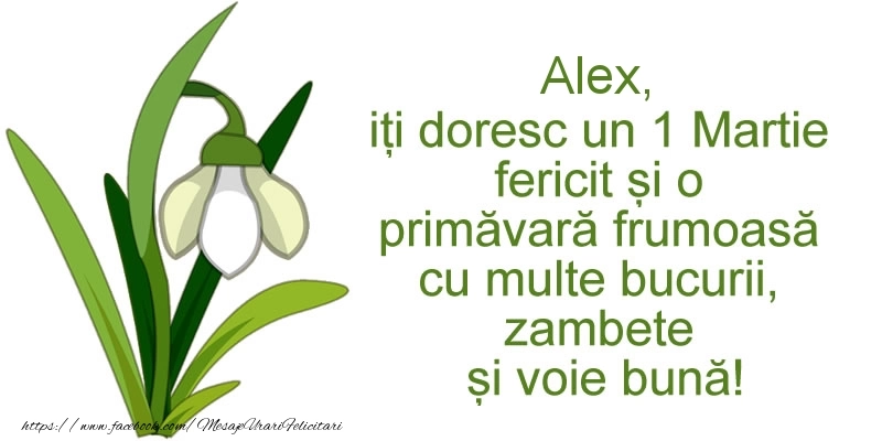 Alex, iti doresc un 1 Martie fericit si o primavara frumoasa cu multe bucurii, zambete si voie buna!