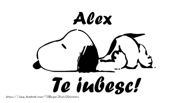 Această felicitare cu căteluș haios din colecția noastră de felicitari de dragoste cu numele Alex are o notă de originalitate și îți oferă ocazia să faci o persoană să se simtă specială datorită faptului că acolo este numele ei. Felicitarea se poate descărca gratuit sau se poate trimite prin Whatsapp, Facebook, Twitter, Pinterest. Imagine de iubire cu căteluș haios cu dimensiunile 600px x 337px și cu textul Alex Te iubesc!.