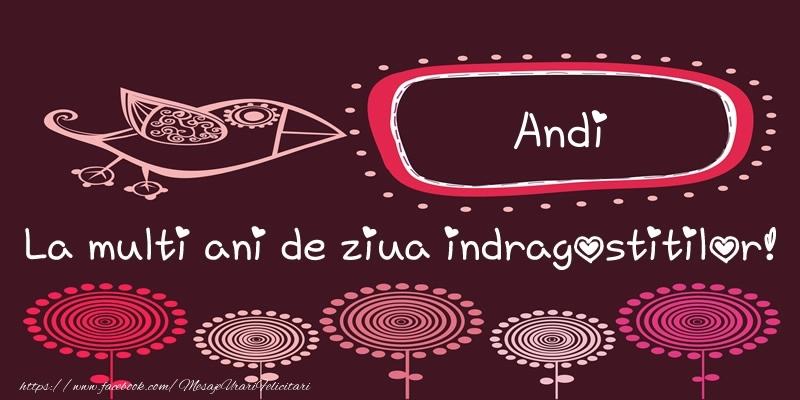 Romantismul se regăsește în fiecare detaliu! De la designul delicat la modul în care numele Andi se împletește cu mesajul, felicitarea de Valentine's day cu compoziție cu flori aduce un strop de romantism cu atenție la detalii.