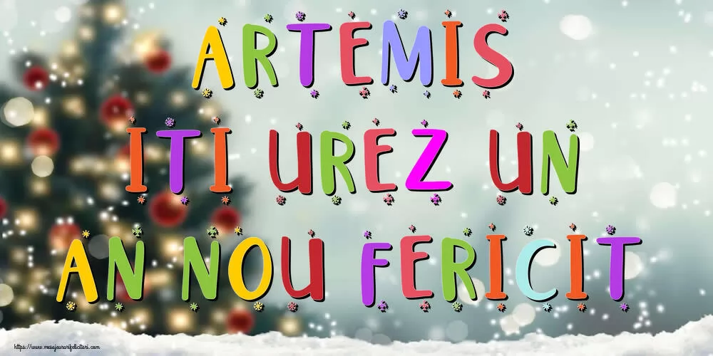 Această felicitare cu brad în peisaj de iarnă din colecția noastră de felicitari de Anul Nou cu numele Artemis are o notă de originalitate și îți oferă ocazia să faci o persoană să se simtă specială datorită faptului că acolo este numele ei. Felicitarea se poate descărca gratuit sau se poate trimite prin Whatsapp, Facebook, Twitter, Pinterest. Imagine de Anul Nou cu brad în peisaj de iarnă cu dimensiunile 1000px x 500px și cu textul Artemis, iti urez un An Nou Fericit!.