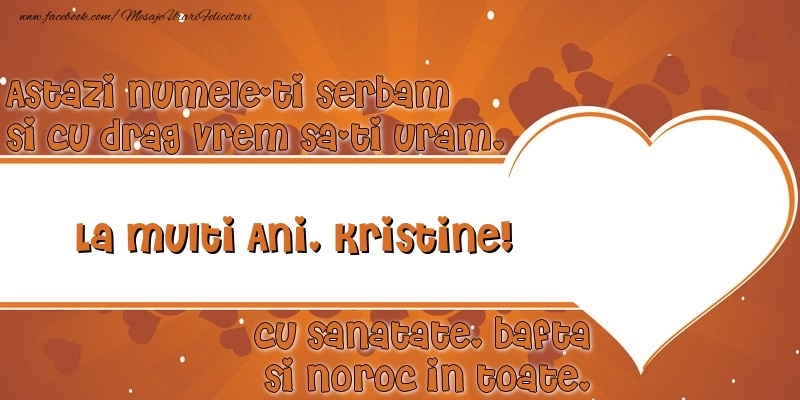 Astazi numele-ti serbam si cu drag vrem sa-ti uram, La multi ani Kristine cu sanatate, bafta si noroc in toate. | Felicitare cu inimioare | Felicitari de Ziua Numelui