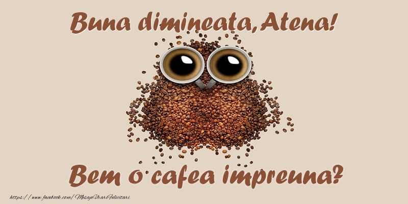 Buna dimineata, Atena! Bem o cafea impreuna? | Felicitare cu aranjament cu cafea amuzant | Felicitari de buna dimineata