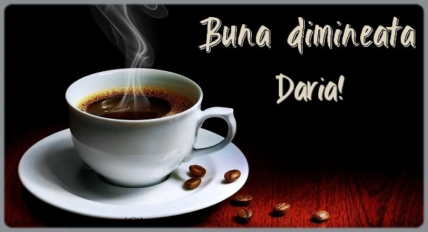 Felicitarea de buna dimineata cu cafea caldă și boabe pe fundal negru pentru Daria aduce cu sine raze luminoase și culori calde, ca o invitație la un nou început plin de bucurie. În această dimineață, aroma cafelei se amestecă cu numele Daria pentru a crea un amestec unic de energie și confort.