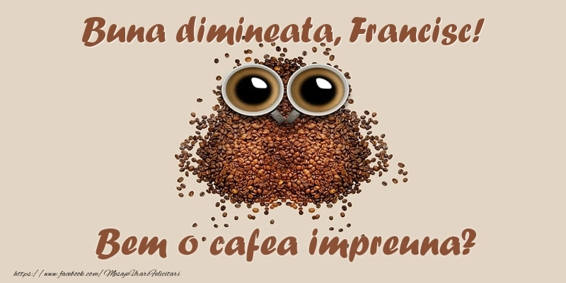 Buna dimineata, Francisc! Bem o cafea impreuna? | Felicitare cu aranjament cu cafea amuzant | Felicitari de buna dimineata