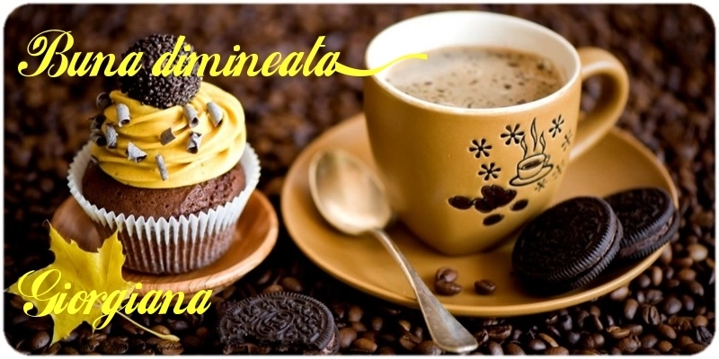Felicitarea de buna dimineata cu cafea, bicuiți si prăjitură pentru Giorgiana aduce cu sine raze luminoase și culori calde, ca o invitație la un nou început plin de bucurie. În această dimineață, aroma cafelei se amestecă cu numele Giorgiana pentru a crea un amestec unic de energie și confort.