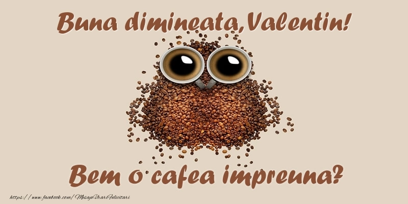 Felicitarea de buna dimineata cu aranjament cu cafea amuzant pentru Valentin aduce cu sine raze luminoase și culori calde, ca o invitație la un nou început plin de bucurie. În această dimineață, aroma cafelei se amestecă cu numele Valentin pentru a crea un amestec unic de energie și confort.