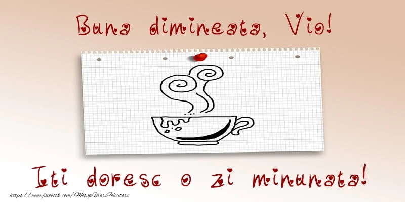 Felicitarea de buna dimineata cu cafea de dragoste cu inimioare pentru Vio aduce cu sine raze luminoase și culori calde, ca o invitație la un nou început plin de bucurie. În această dimineață, aroma cafelei se amestecă cu numele Vio pentru a crea un amestec unic de energie și confort.