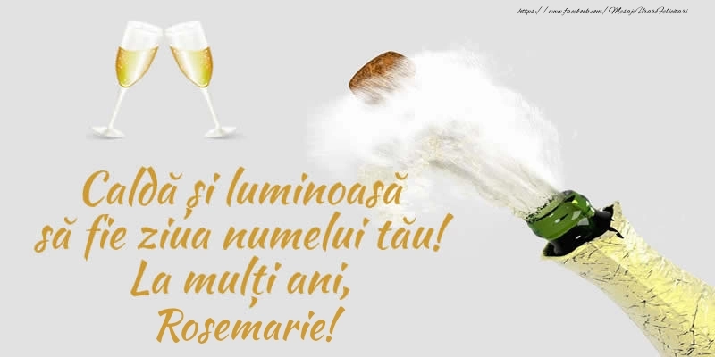 Poezie de ziua numelui: De ziua ce-ti surade-n prag / Si-i porti frumosul nume, / Eu iti doresc tot ce-i mai drag / Si mai frumos pe lume. La multi ani, Rosemarie!