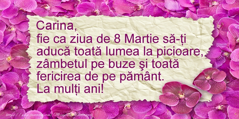 Felicitari 8 Martie Ziua Femeii | Carina La multi ani! 8 martie