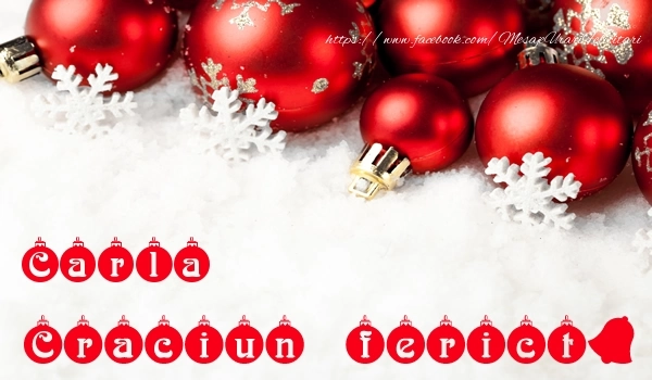 Felicitarea cu fundal cu globuri de crăciun si fontul textului cu globuri pentru Carla spune o poveste de iarnă unică, iar numele Carla este eroul principal. Este o călătorie captivantă în lumea minunată a Crăciunului, personalizată pentru a aduce bucurie și emoție.