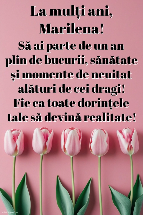 Împărtășește momente speciale cu imagini unice și mesaje de La Mulți Ani pentru Marilena. Felicitările personalizate sunt ideale pentru a transmite urări de bine și iubire într-un mod original și plin de emoție.