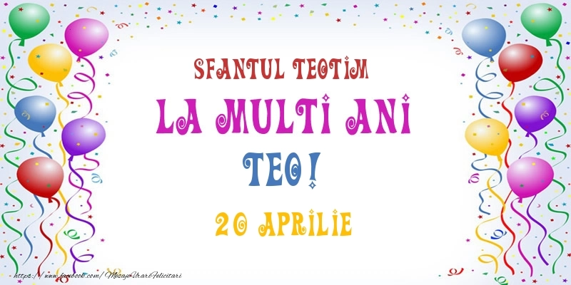Felicitări de Ziua Numelui cu numele Teo: Cele mai apreciate: 20 Aprilie - Sfântul Teotim