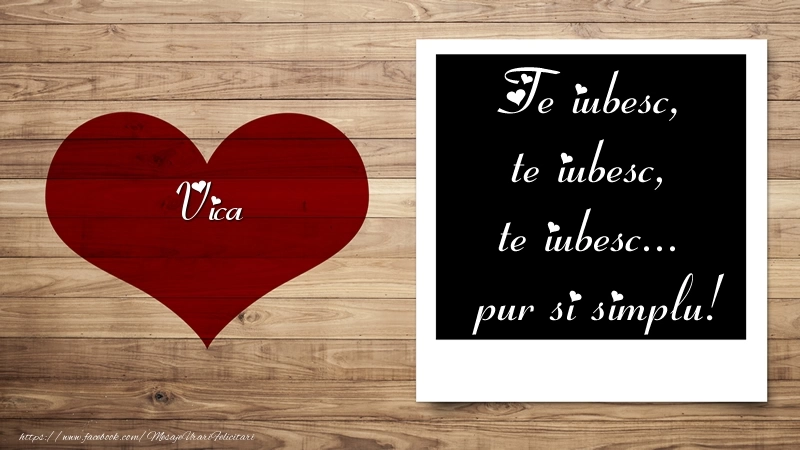 Descoperă colecția noastră de felicitări cu numele Vica pentru Valentine's day - Ziua Îndrăgostiților, pline de romantism și emoție. Aceste felicitări sunt create cu grijă pentru a aduce zâmbete și bucurie în inimile celor care le primesc. Fiecare felicitare spune o poveste de dragoste unică, iar numele de fata Vica devine steaua acestei povești. Este o călătorie prin sentimente și emoții profunde, personalizată cu numele Vica pentru a aduce bucurie și romantism.