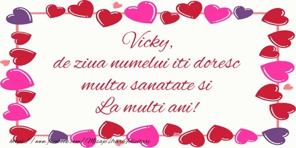 Surprinde pe cineva drag cu numele Vicky cu imagini și felicitări personalizate de Ziua Onomastică! Alege mesajul perfect și transmite-i cele mai frumoase gânduri!
