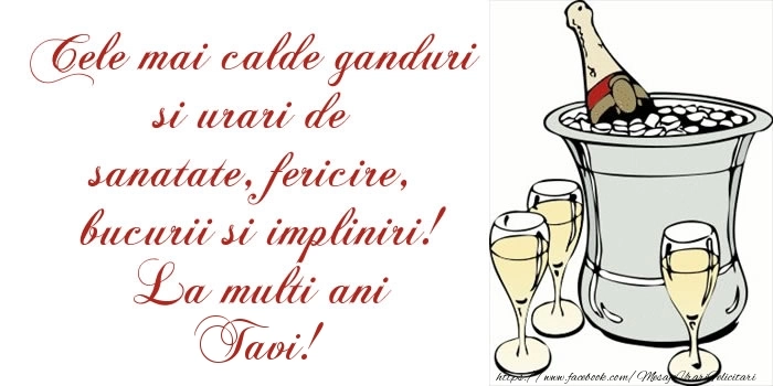 Cele mai calde ganduri si urari de sanatate, fericire, bucurii si impliniri! La multi ani Tavi!