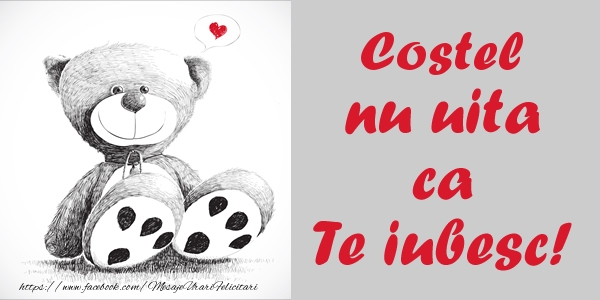 Costel nu uita ca Te iubesc! | Felicitare cu un ursulet de dragoste simpatic | Felicitari de dragoste
