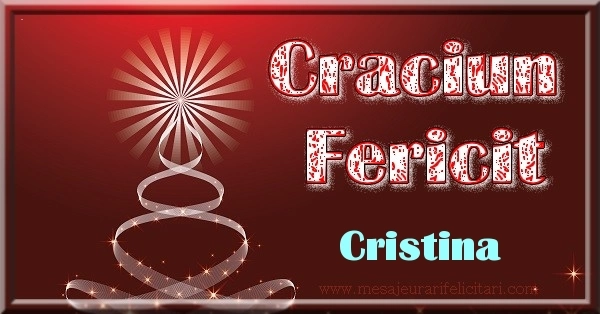 Această felicitare cu desen abstract cu brad din colecția noastră de felicitari de Craciun cu numele Cristina are o notă de originalitate și îți oferă ocazia să faci o persoană să se simtă specială datorită faptului că acolo este numele ei. Felicitarea se poate descărca gratuit sau se poate trimite prin Whatsapp, Facebook, Twitter, Pinterest. Imagine de Sărbătoarea Crăciunului cu desen abstract cu brad cu dimensiunile 600px x 314px și cu textul Craciun Fericit .