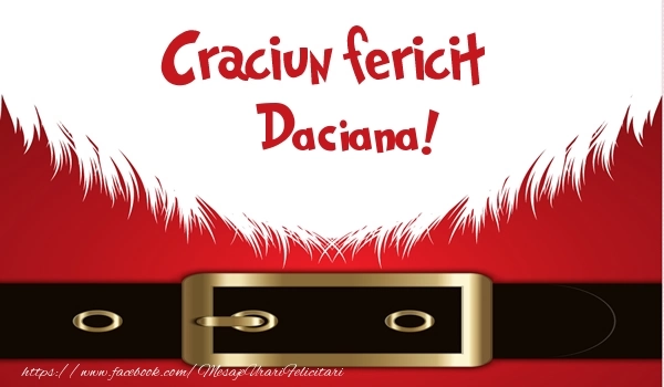 Această felicitare cu Mos Craciun din colecția noastră de felicitari de Craciun cu numele Daciana are o notă de originalitate și îți oferă ocazia să faci o persoană să se simtă specială datorită faptului că acolo este numele ei. Felicitarea se poate descărca gratuit sau se poate trimite prin Whatsapp, Facebook, Twitter, Pinterest. Imagine de Sărbătoarea Crăciunului cu Mos Craciun cu dimensiunile 600px x 350px și cu textul Craciun Fericit Daciana!.