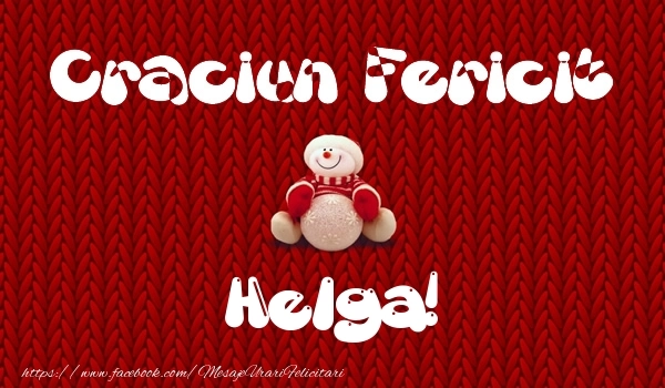 Această felicitare cu Om de zapada amuzant din colecția noastră de felicitari de Craciun cu numele Helga are o notă de originalitate și îți oferă ocazia să faci o persoană să se simtă specială datorită faptului că acolo este numele ei. Felicitarea se poate descărca gratuit sau se poate trimite prin Whatsapp, Facebook, Twitter, Pinterest. Imagine de Sărbătoarea Crăciunului cu Om de zapada amuzant cu dimensiunile 600px x 350px și cu textul Craciun Fericit Helga!.