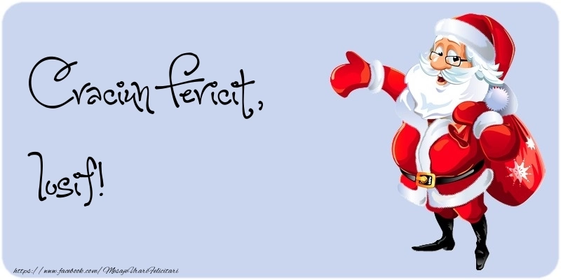 Această felicitare cu Mos Craciun simpatic cu sacul de cadouri din colecția noastră de felicitari de Craciun cu numele Iosif are o notă de originalitate și îți oferă ocazia să faci o persoană să se simtă specială datorită faptului că acolo este numele ei. Felicitarea se poate descărca gratuit sau se poate trimite prin Whatsapp, Facebook, Twitter, Pinterest. Imagine de Sărbătoarea Crăciunului cu Mos Craciun simpatic cu sacul de cadouri cu dimensiunile 800px x 400px și cu textul Craciun Fericit, Iosif.