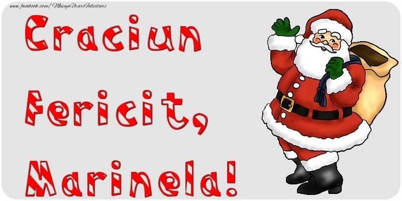 Craciun Fericit, Marinela | Felicitare cu Mos Craciun cu sacul în spate ne salută | Felicitari de Craciun