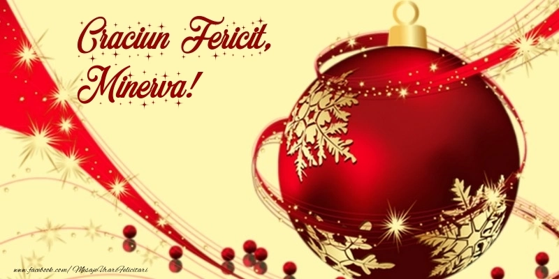 Această felicitare cu glob roșu din colecția noastră de felicitari de Craciun cu numele Minerva are o notă de originalitate și îți oferă ocazia să faci o persoană să se simtă specială datorită faptului că acolo este numele ei. Felicitarea se poate descărca gratuit sau se poate trimite prin Whatsapp, Facebook, Twitter, Pinterest. Imagine de Sărbătoarea Crăciunului cu glob roșu cu dimensiunile 800px x 400px și cu textul Craciun Fericit, Minerva.